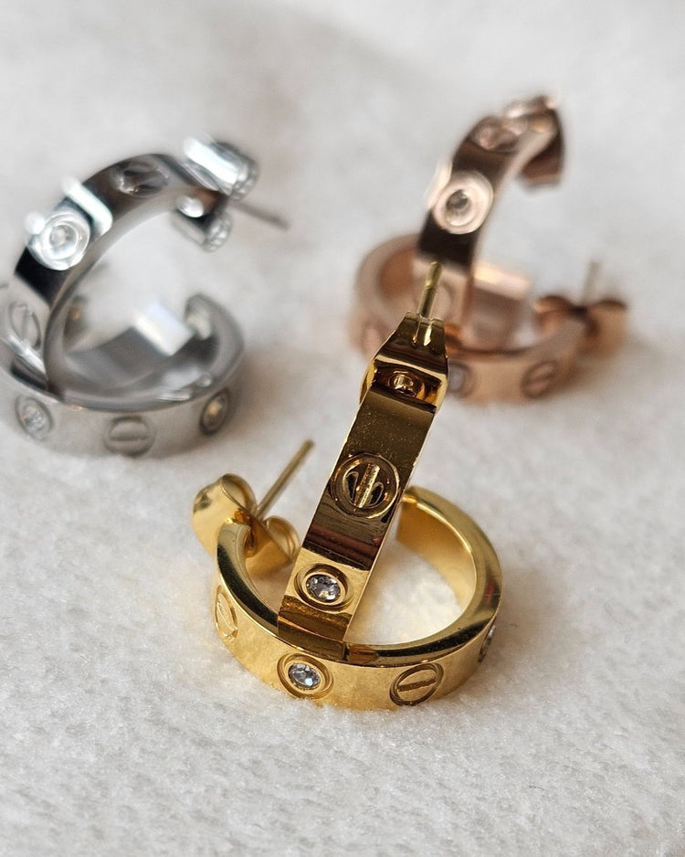 💖 Elevate your elegance with our Love Earrings Stainless Steel Hoops, a perfect complement to the timeless style of our Love Bracelet. Crafted with precision from high-quality stainless steel, these hoops exude sophistication and durability.